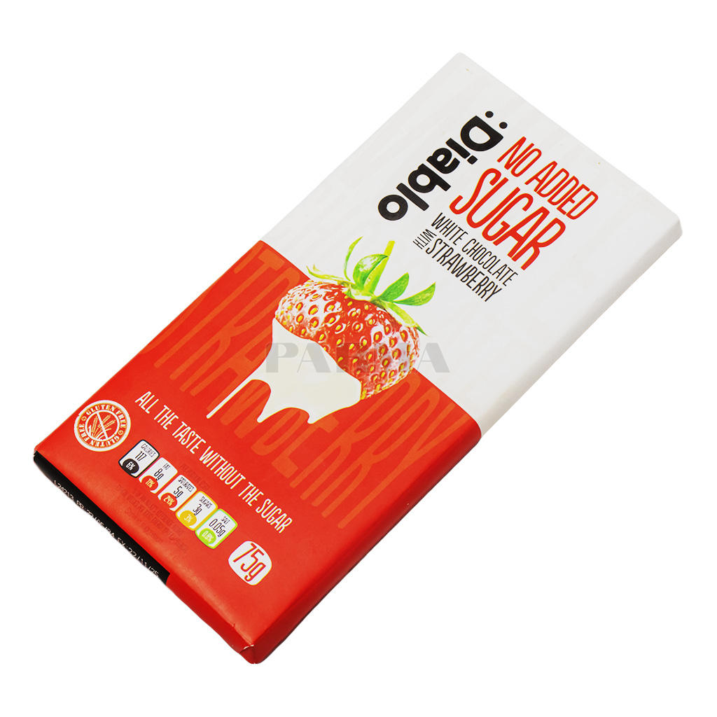 Chocolate bar "Diablo" white, strawberry, sugar free 75g
